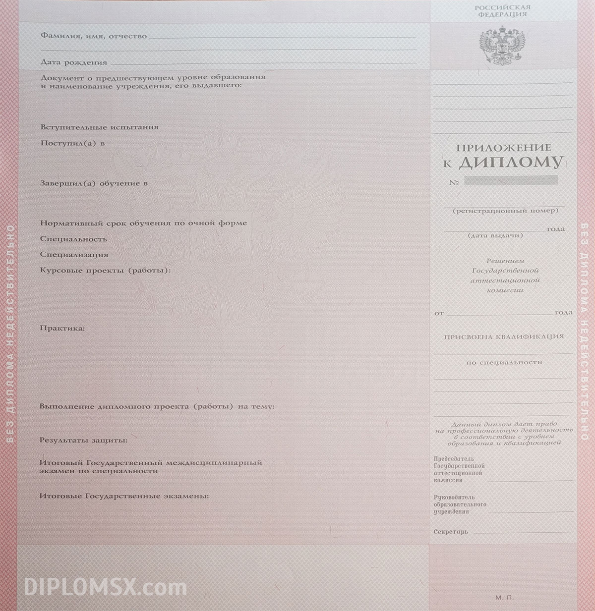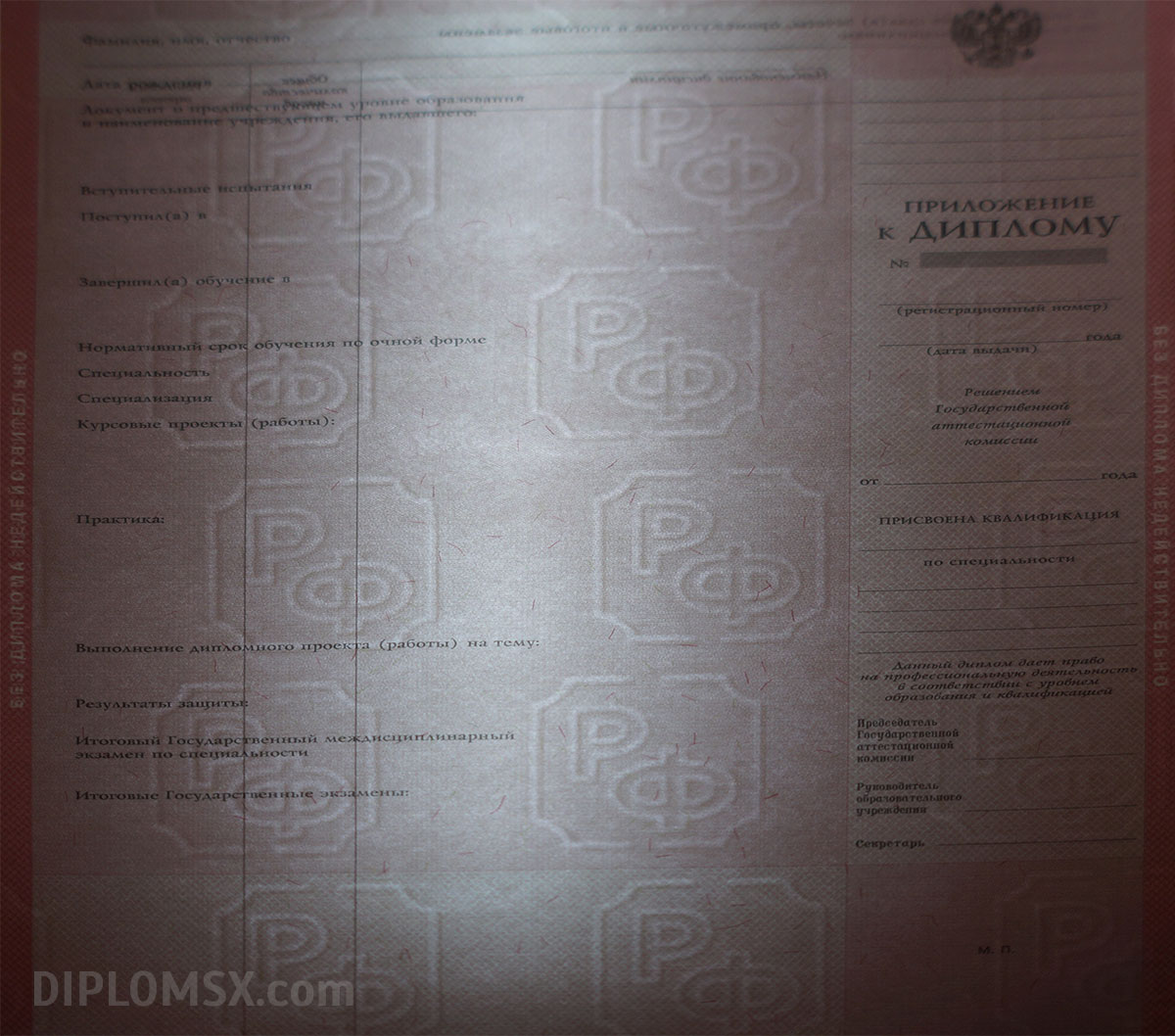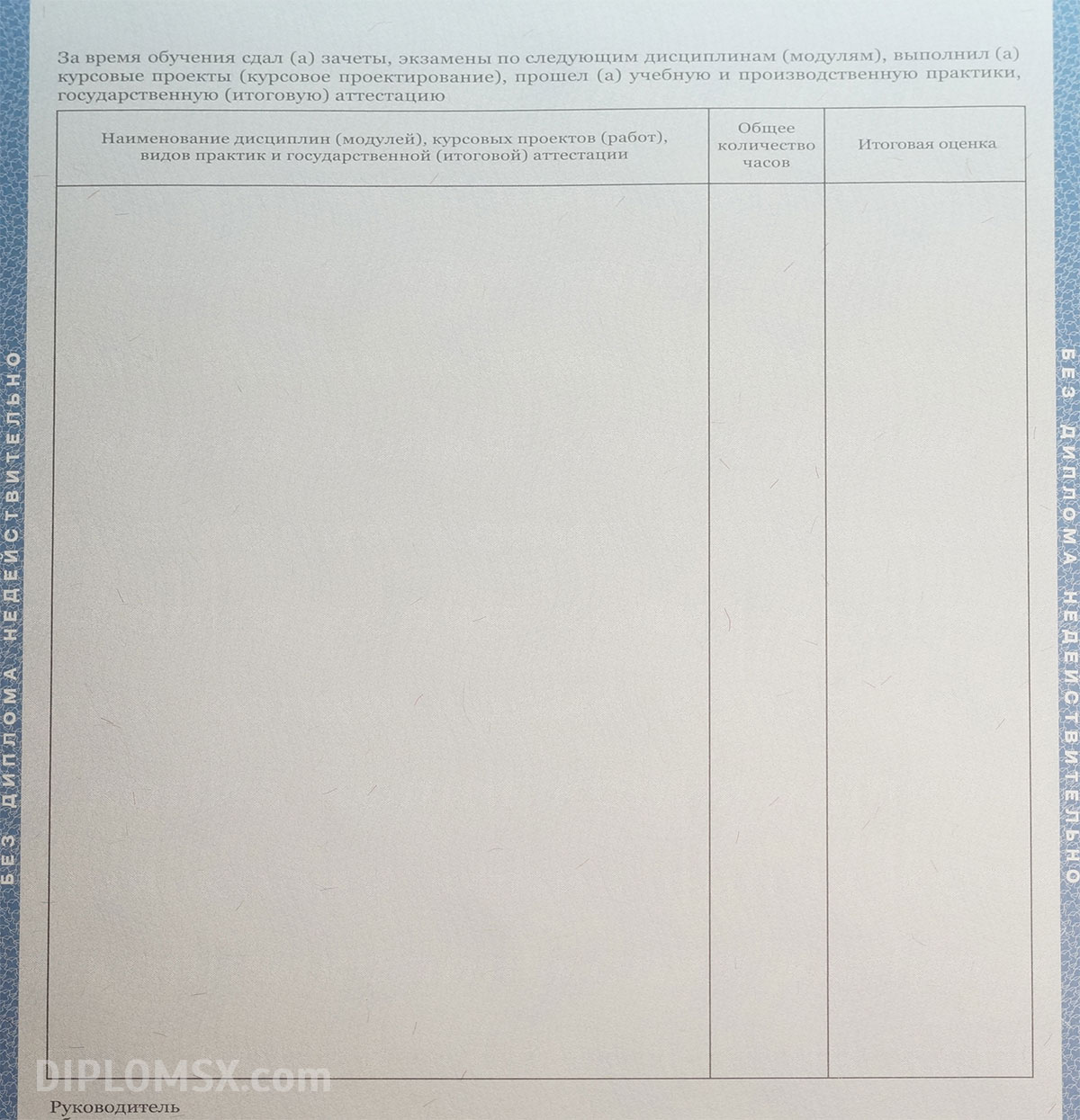 Изготовим не только сам диплом, но и вкладыш с указанием пройденных дисциплин, потраченных на изучение часов и заработанных при сдаче экзаменов и зачетов отметок. К такому диплому техникума не смогут возникать вопросы ни у кого, он не вызовет сомнений ни у работодателей, ни у членов приемных комиссий институтов.